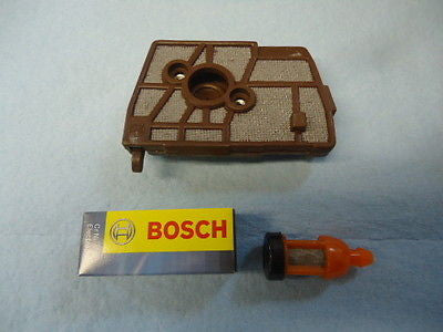 Tune up kit for the Stihl 028 chainsaws. The kit comes with a new air filter, bosch spark plug, and fuel filter.